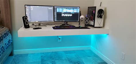 Web I Finally Built My Self The Ultimate Gaming Desk By Making It A Floating Desk With Rgb Led Lights.